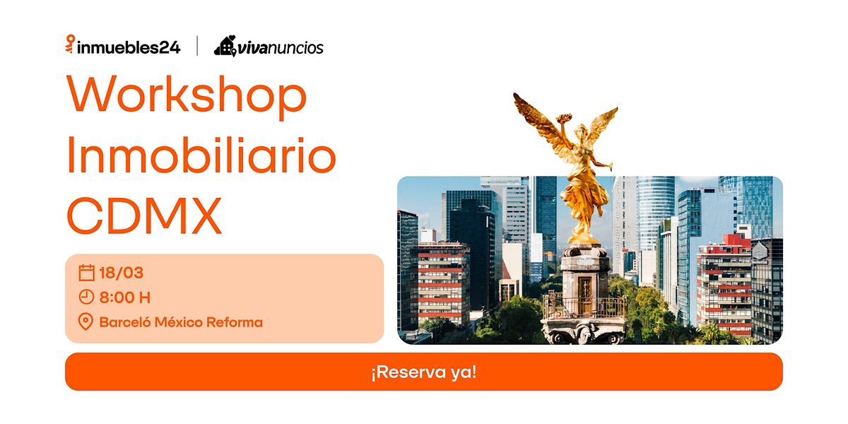 Inmuebles24 y Vivanuncios se complacen en invitarte al Workshop Inmobiliario CDMX. Estamos comprometidos con tu desarrollo y crecimiento profesional, por ello queremos compartir contigo temas en tendencia, tecnología, estrategias de ventas, finanzas, herramientas digitales y recomendaciones para impulsar tu negocio de bienes raíces.