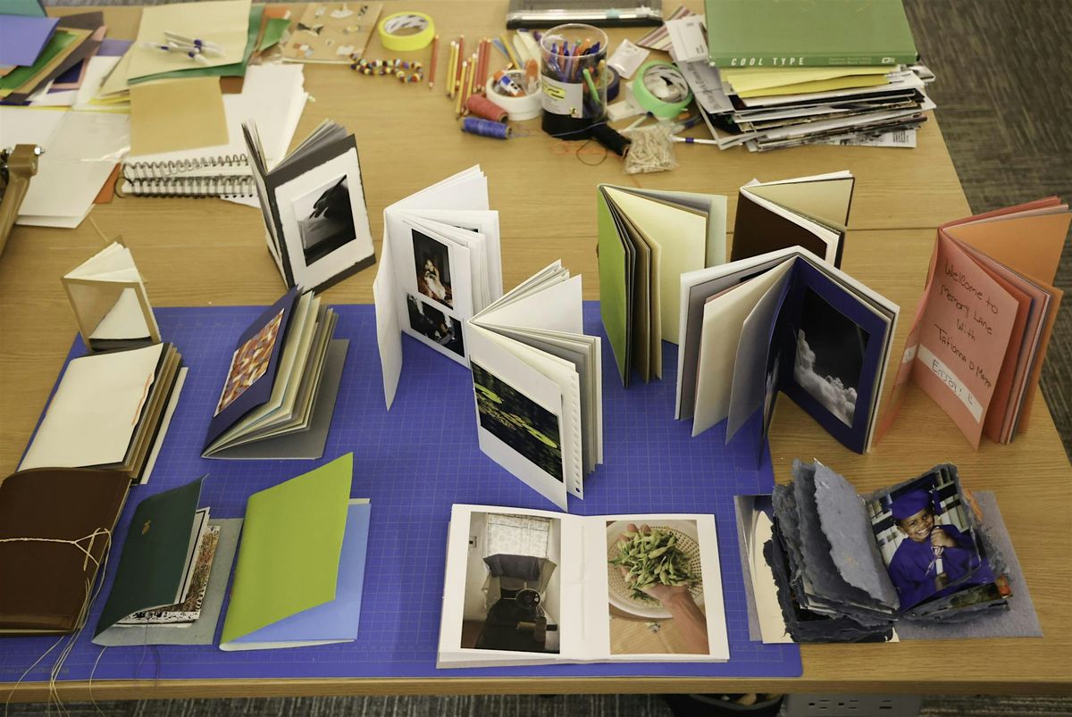 Participants are encouraged to reflect on their experiences and select one visual moment from each month—bringing a minimum of 12 photographs (4 × 6 inches), with the option to include more. In addition to photographs, attendees are welcome to bring archival or found materials, ephemera, and small objects to incorporate into their books during the decorative process.