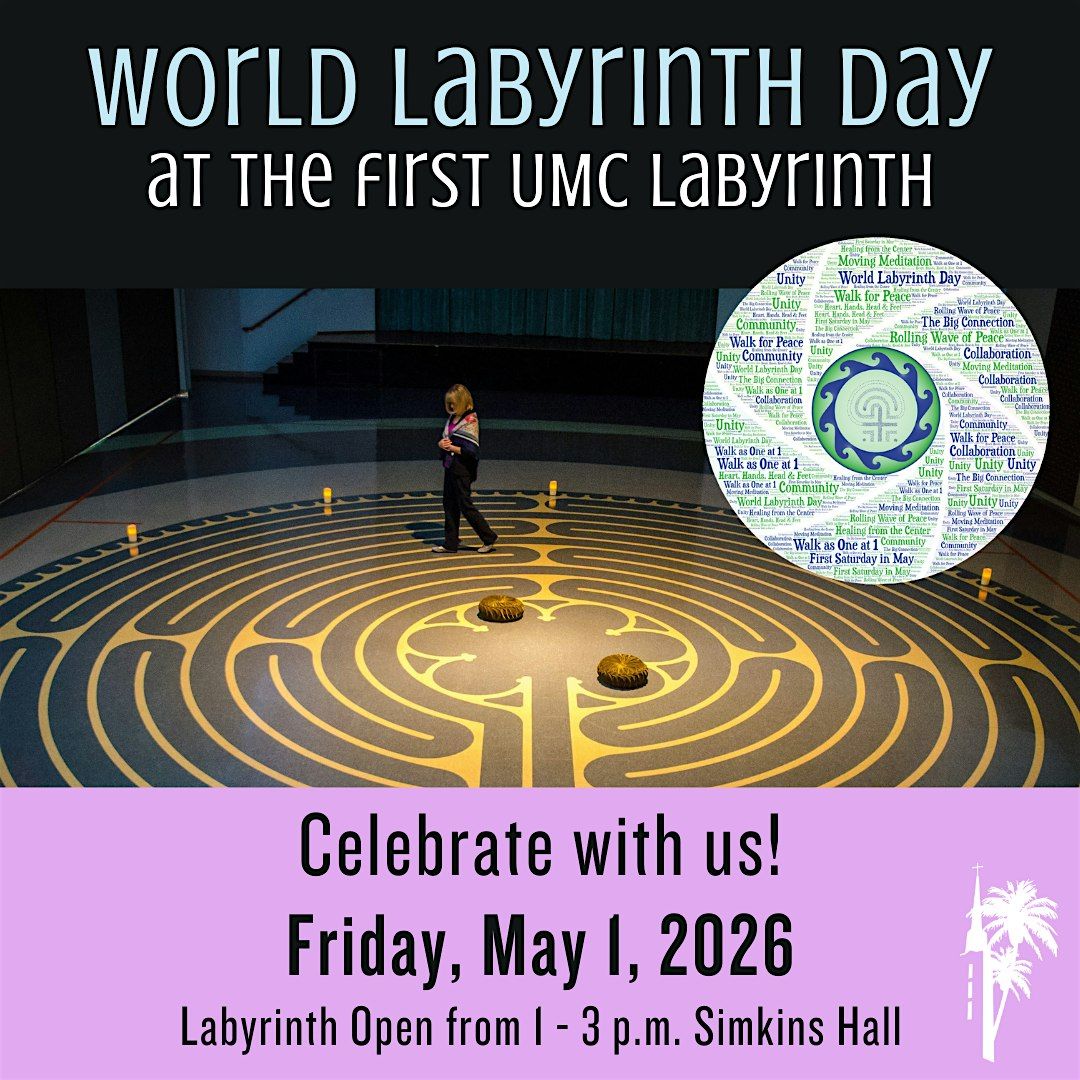 First UMC Santa Monica, with The Labyrinth Society, will celebrate World Labyrinth Day with opportunities for people of all ages to engage the Labyrinth in Simkins Hall. From 1 – 3 p.m., we will host our customary quiet hours for walking and praying. Resources to draw your own labyrinth will also be available. Every year, World Labyrinth Day is celebrated by thousands of people around the globe. We join this community in a moving meditation for world peace and to celebrate the labyrinth experience.
