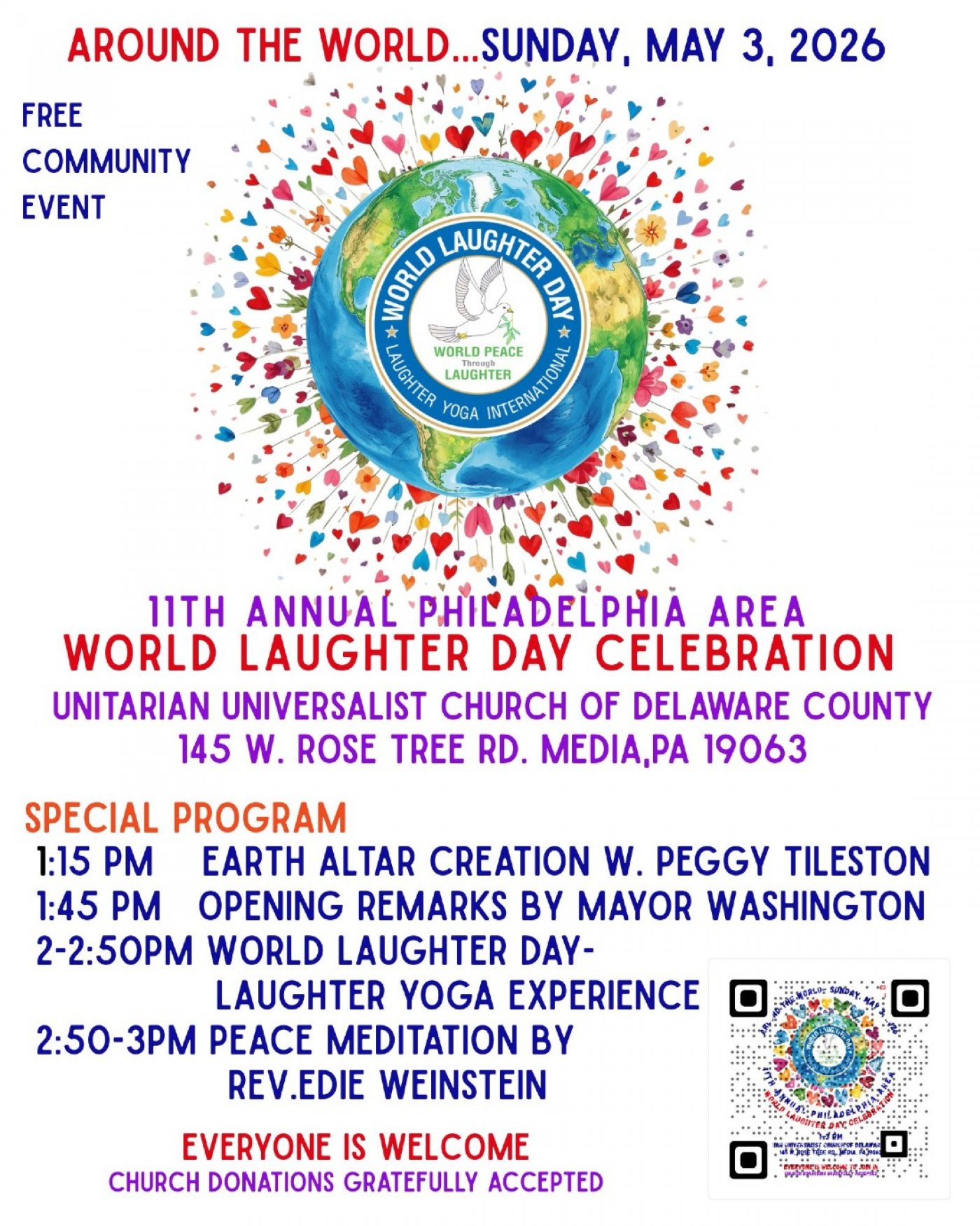 MEDIA, PA — January 30, 2026 — It’s official! Sunday, May 3rd, 2026, marks the 11th Annual Philadelphia Area World Laughter Day Celebration, hosted in Media, Pennsylvania — the heart of Delaware County.