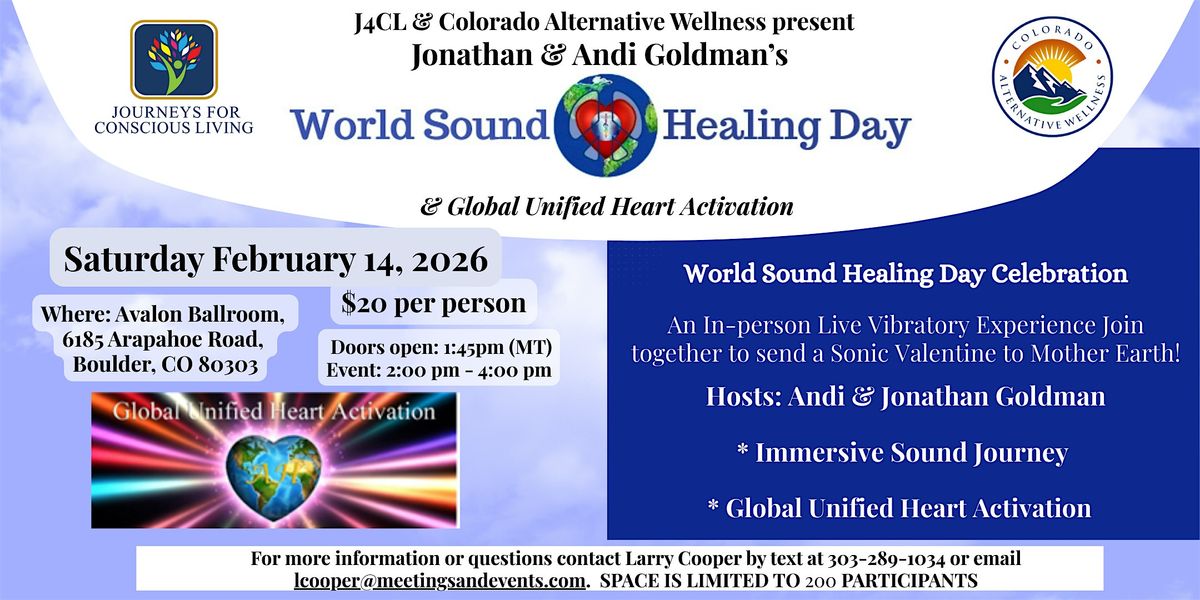 * Global Unified Heart Activation Participate in a transcendent group teaching and sacred sound healing experience guided by Healing Sounds® Andi & Jonathan Goldman. We will vocalize the sacred Heart Sound "AH" in unified intention to uplift Mother Earth's consciousness and experience profound personal & planetary transformation.