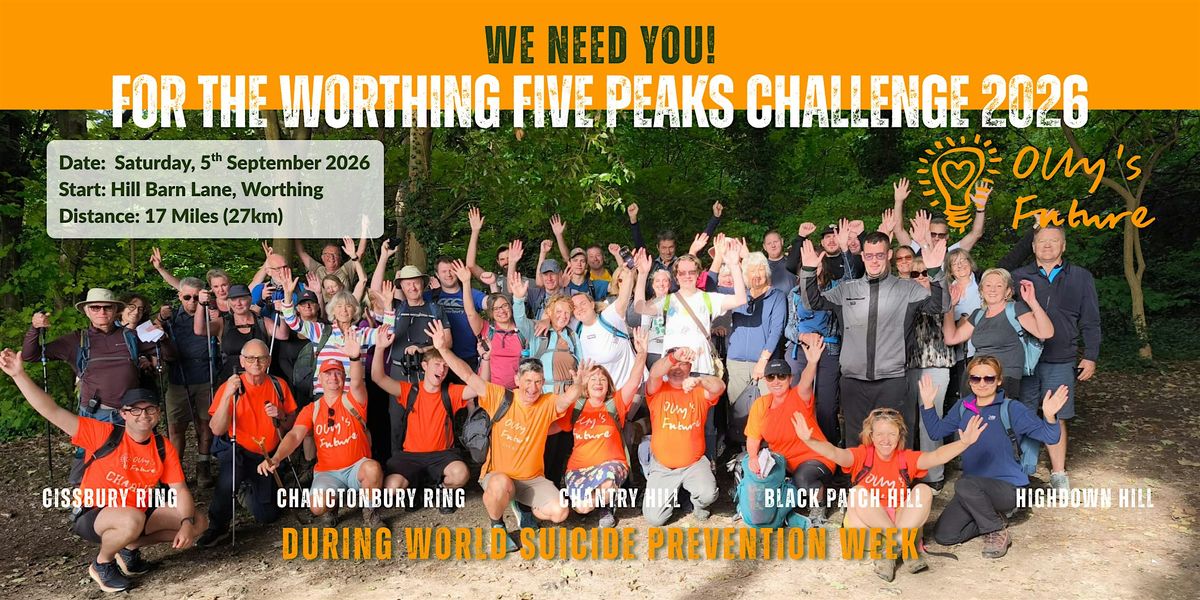 Come join us for an epic adventure on Saturday, 5th September 2026 at 9.00am, enjoying the splendour of the South Downs National Park while raising vital funds during World Suicide Prevention Week for www.ollysfuture.org.uk. You'll be helping an amazing cause. For anyone who has lost someone to suicide, this is a chance to honour them.