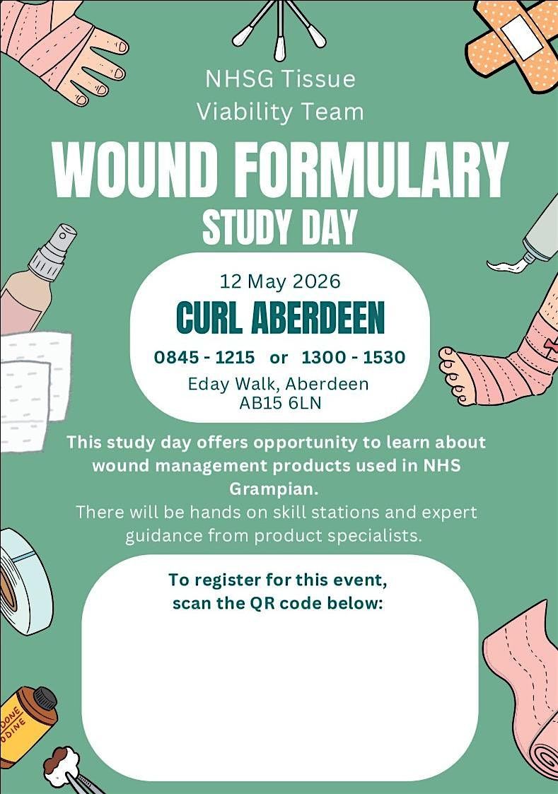 This study day offers opportunity to learn about wound management products used in NHS Grampian. There will be hands on skill stations and expert guidance from product specialists