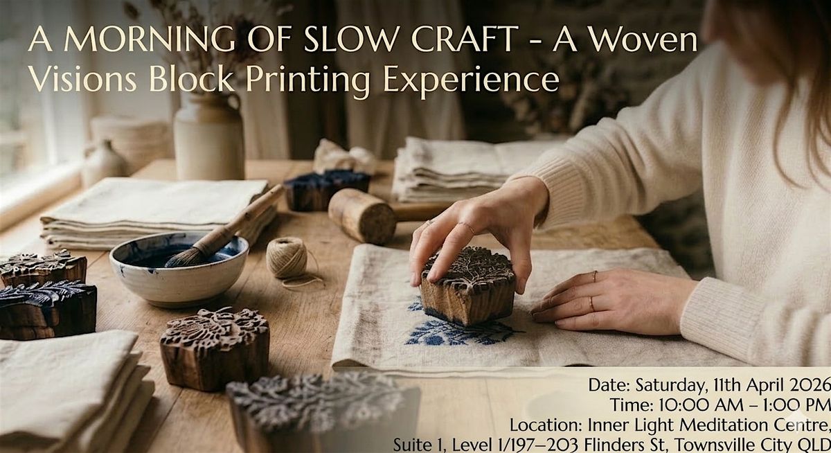 Step into the world of slow, mindful creativity with Woven Visions. This is an intimate block printing experience, rooted in a centuries-old craft from Jaipur, India. Each pattern begins with a hand-carved wooden block, carrying the skill and patience of artisans who have been preserving this art for generations.