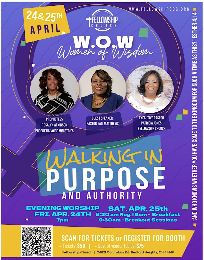Get ready for an inspiring in-person gathering where incredible women of God come together to share Godly wisdom. This conference is designed to assist women in knowing what it means to "Walk in Purpose with Authority". It will be a time of encouragement, empowerment, and fellowship. Don't miss out on this anointed & God inspired service & conference, where you will not only find fellowship but lasting friendships. Join us and be part of something truly special!