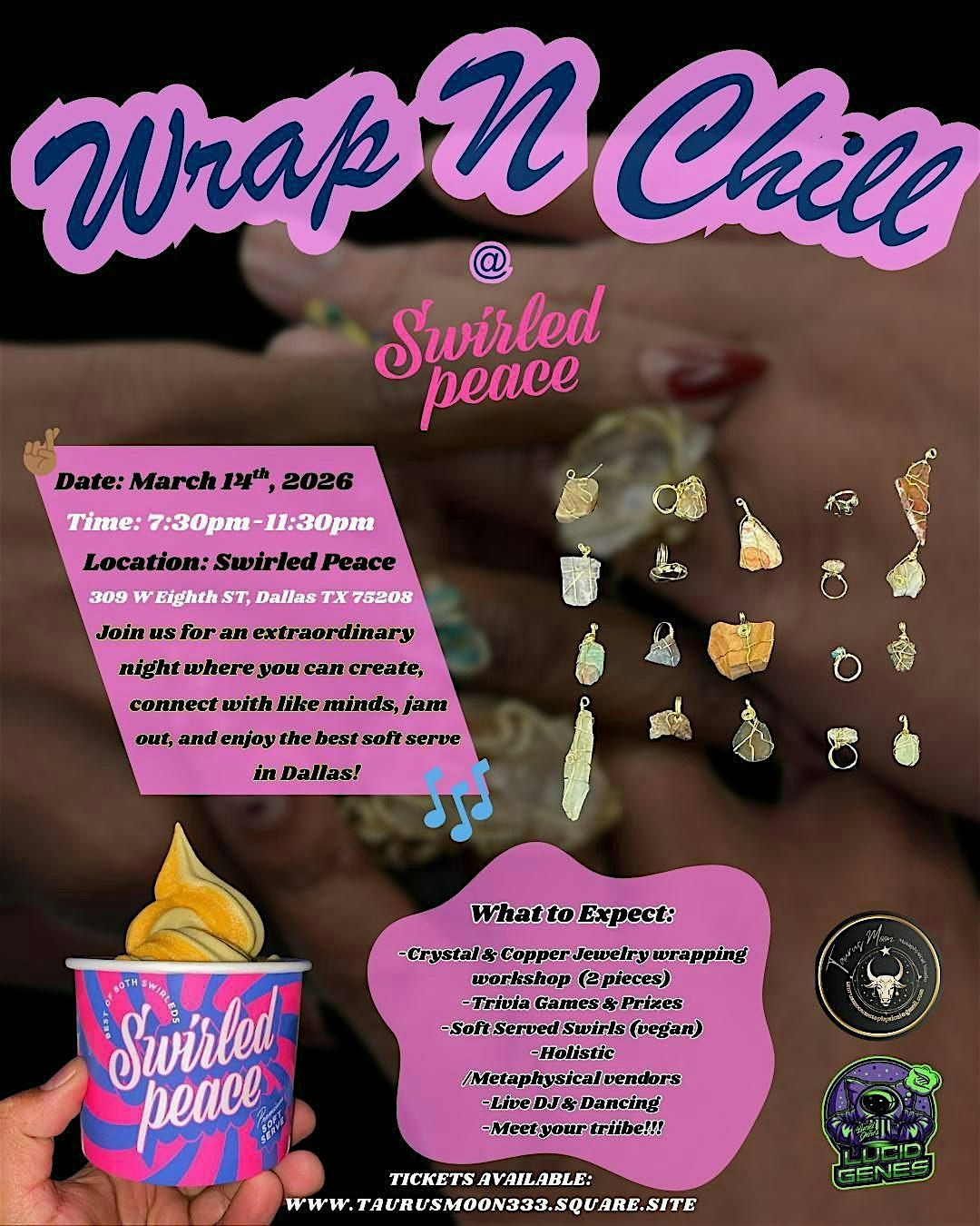 Get ready to unleash your inner artist and create unique crystal & copper jewelry pieces at Wrap N Chill workshop!