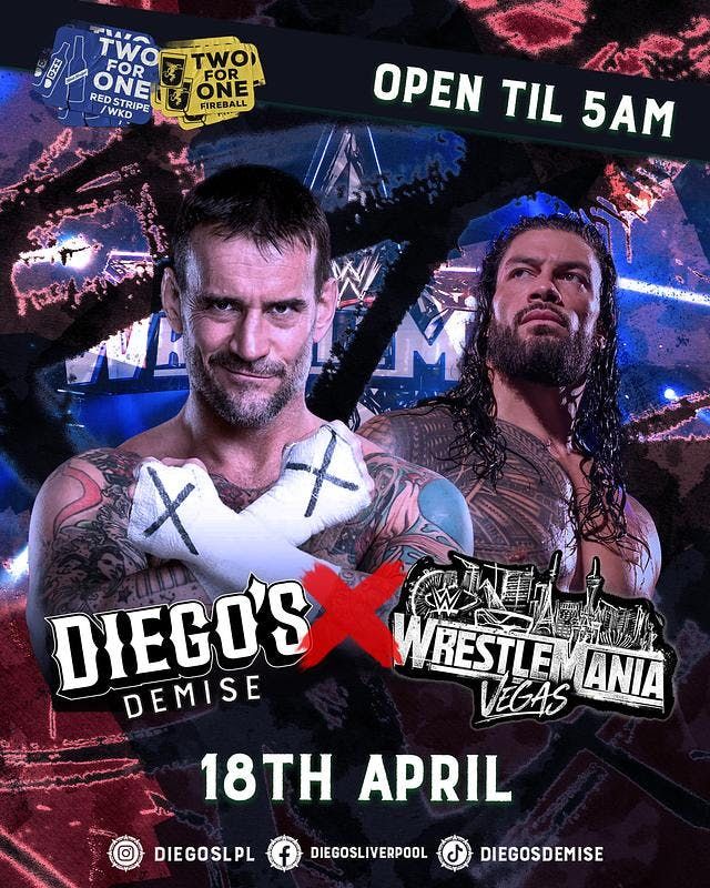 Come down for WrestleMania live through the night until 5AM, whether you’re catching a few matches or staying for the full card.Drink Specials: