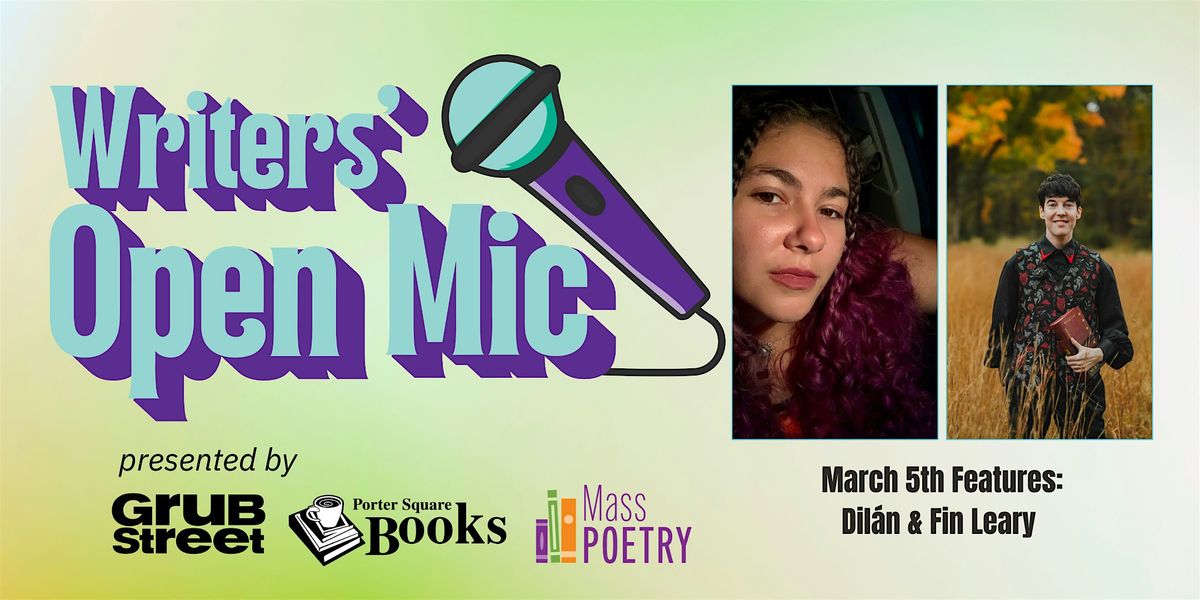 Writers’ Open Mic is free to attend, 18+, and registration is requested. Alcohol will be for sale for 21+ attendees. WOM is brought to you by GrubStreet, Porter Square Books, and Mass Poetry.