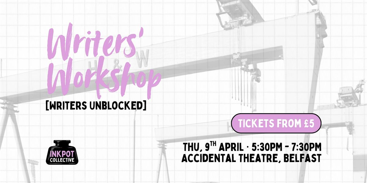 In April, we will look at ways to get unstuck when hit by writer's block. Join us on Thursday, 9th April at 5:30-7:30 PM at Accidental Theatre (Book Bar) in Belfast.