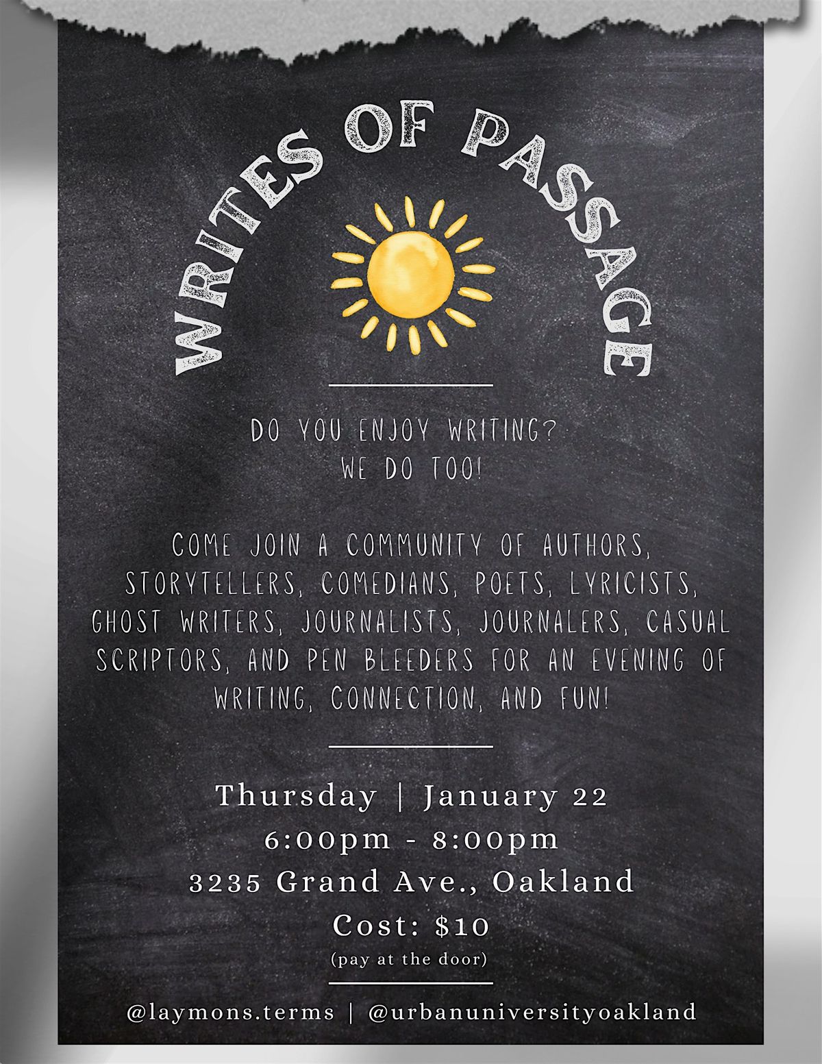 Calling all authors, storytellers, comedians, poets, lyricists, ghost writers, journalists, journalers, casual writers, and pen bleeders! Join us at The Workshop for an afternoon of writing, connection, and fun. Whether you want to work on your own project or explore provided prompts, come scribe with a brilliant writing community at The Workshop (3235 Grand Ave., Oakland, CA 94612).