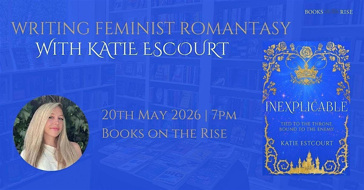 Join us for an evening with romance/fantasy author Katie Escourt as we discuss her new book 'Inexplicable', the rise of romantasy and writing feminist characters in the genre!