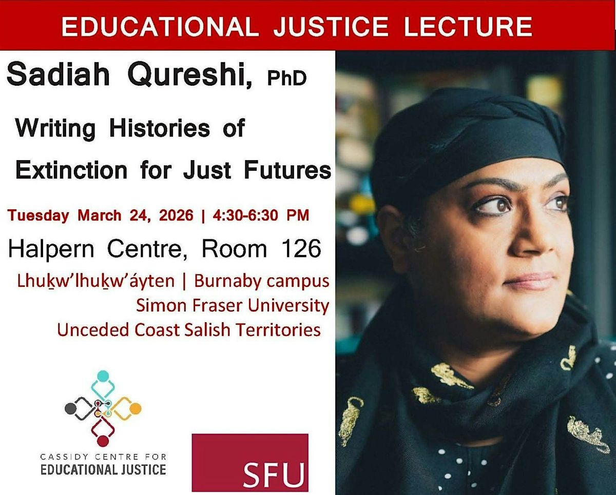 Made possible with funding from: Cassidy Centre for Educational Justice; Faculty of Education’s Research Hub; Centre for Comparative Muslim Studies; David Lam Centre; Faculty of Arts and Social Sciences; Museum of Archaeology & Ethnology; Department of History; Department of Geography; Department of Gender, Sexuality, and Women’s Studies; and the School of Continuing Education at University of the Fraser Valley. We thank all co-sponsoring academic units for their contributions to this event.