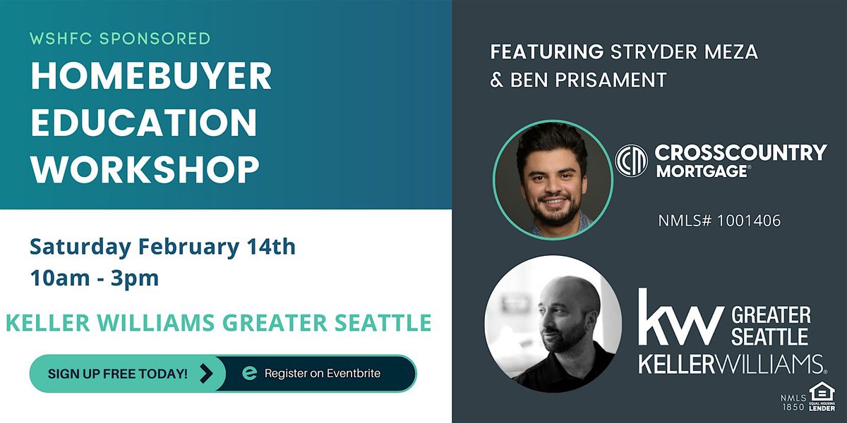 Please join Loan Officer Stryder Meza from CrossCountry Mortgage and Ben Prisament from Keller Williams as they host this WSHFC certified class.
