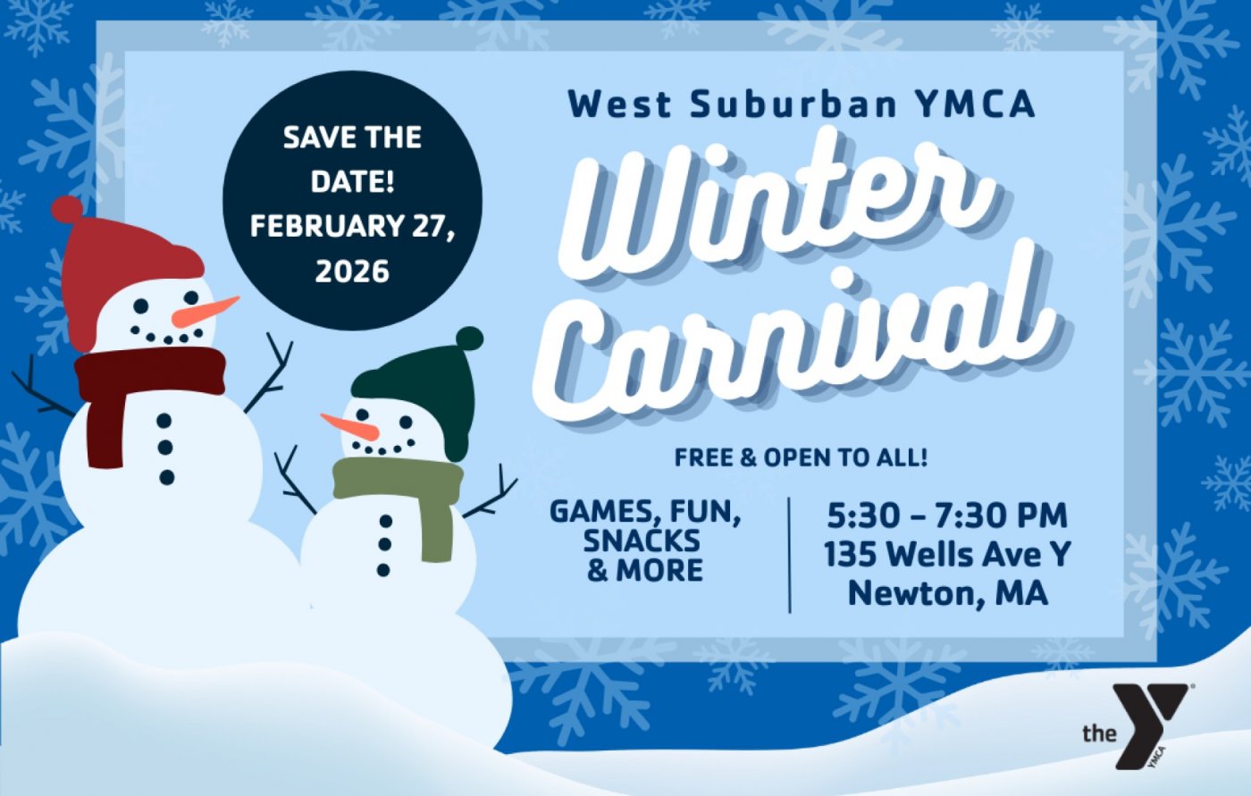 Looking to brighten up the chilly days of February? Mark your calendar for the WSYMCA Winter Carnival! Join us on Friday, February 27, 2026, from 5:30 to 7:30 PM at the Wells Ave Y at 135 Wells Avenue in Newton for an evening packed with fun and laughter.