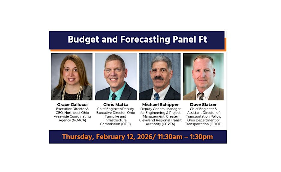 Corporate Sponsors: : AECOM, HDR, Michael Baker International, GPD Group, TranSystems, WSP, Chagrin Valley Engineering, QCI, Wade Trim, DLZ, Beaver Excavating Company, ORC, ms consultants, OHM Advisors, GPI, Mott MacDonald, Mannik & Smith, HNTB, CMT, American Structurepoint, Burgess & Niple, 2LMN, LJB, Markosky, Pennoni, KS Associates, EL Robinson, CHA, SAM, Osborn, Jacobs and C&S Companies.