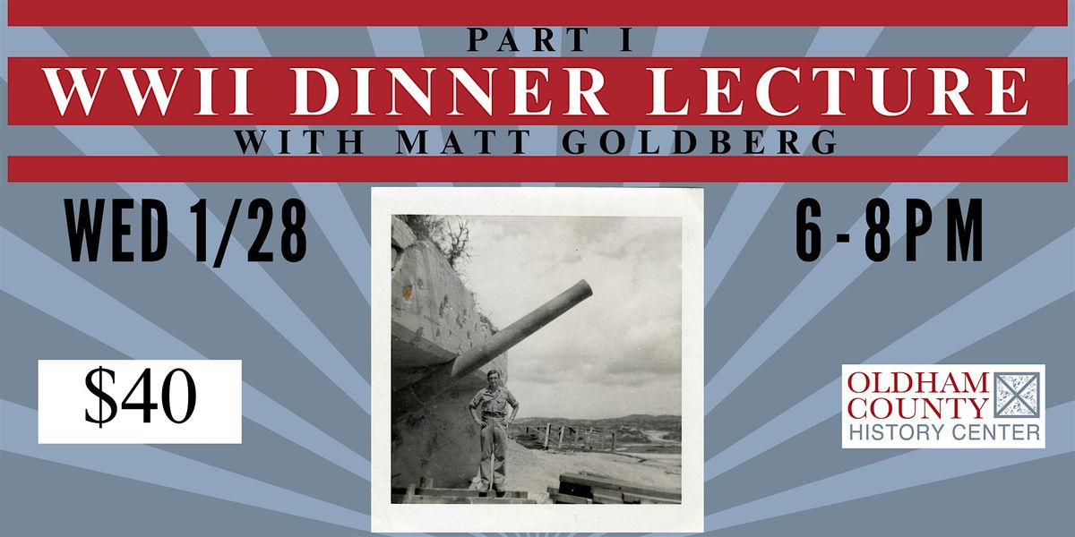 Part 1. The Oldham County History Center welcome back Military Historian Matt Goldberg for a new 3-part series. Buffet Dinner and Cash Bar.