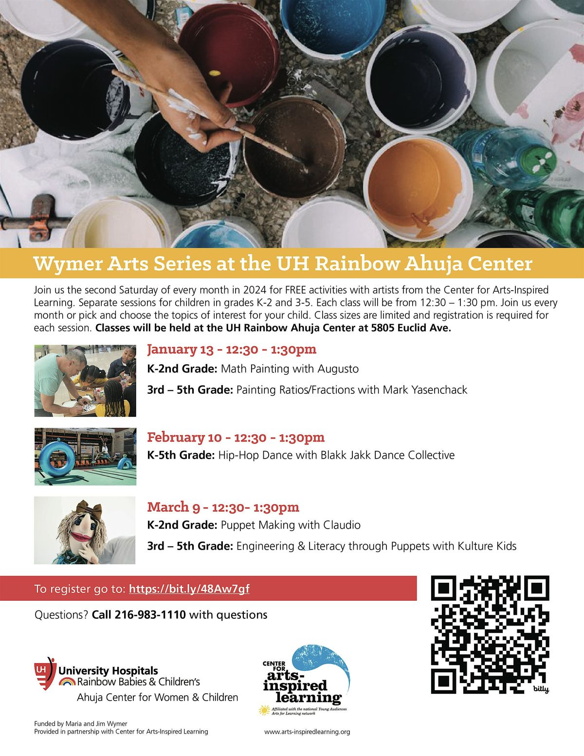 Join us the second Saturday of every month in 2026 for FREE activities with artists from the Center for Arts-Inspired Learning. Separate sessions for children in grades K-2 and 3-5. Each class will be from 12:30 – 1:30 pm. Join us every month or pick and choose the topics of interest for your child. Class sizes are limited and registration is required for each session. Join us early at 12:00 pm for a free lunch!