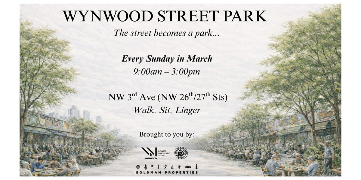 From 9 AM to 3 PM, NW 3rd Avenue between NW 26th and NW 27th Streets will be closed to traffic, becoming an open-street park where neighbors, families, and visitors can gather, relax, and connect.