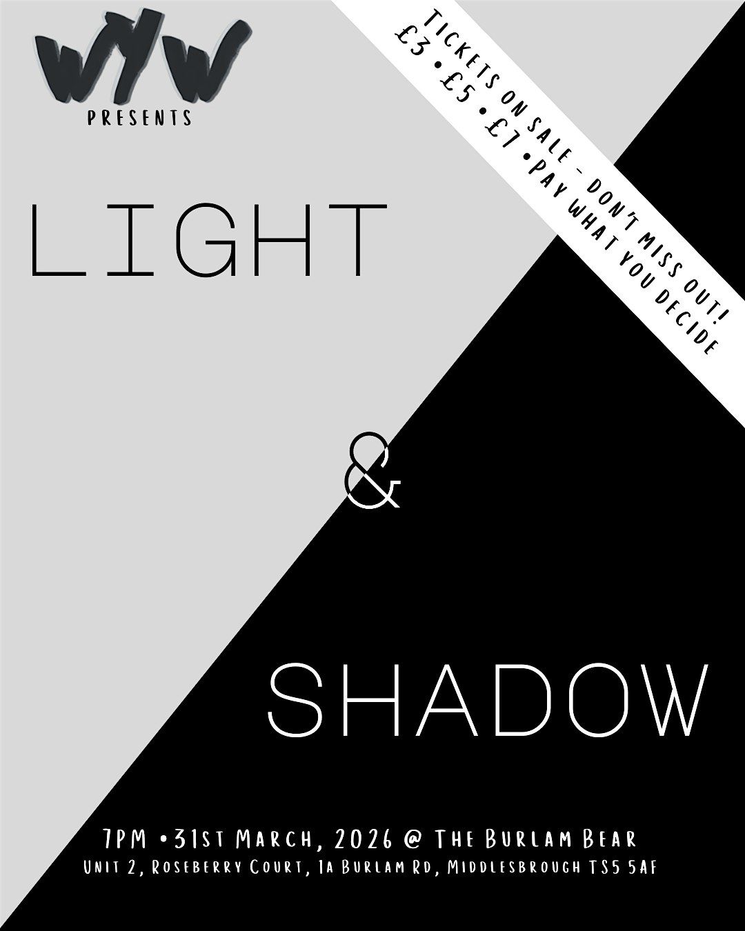 (( At WYW we want our events to remain as accessible and affordable as possible: if you wish to attend but for any reason can't afford a ticket please email us. There will be no questions asked, however, if you ask for a free ticket and then no-show without letting us know you will be no longer be eligible for a no-cost space any future Open mic events.))