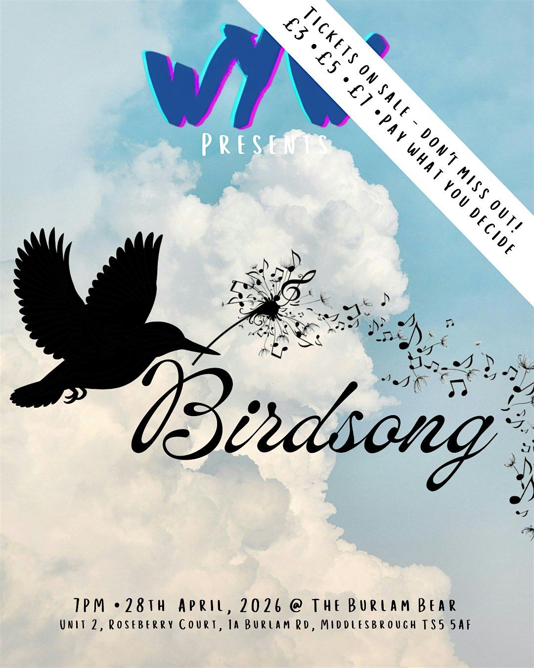 (( At WYW we want our events to remain as accessible and affordable as possible: if you wish to attend but for any reason can't afford a ticket please email us. There will be no questions asked, however, if you ask for a free ticket and then no-show without letting us know you will be no longer be eligible for a no-cost space any future Open mic events.))