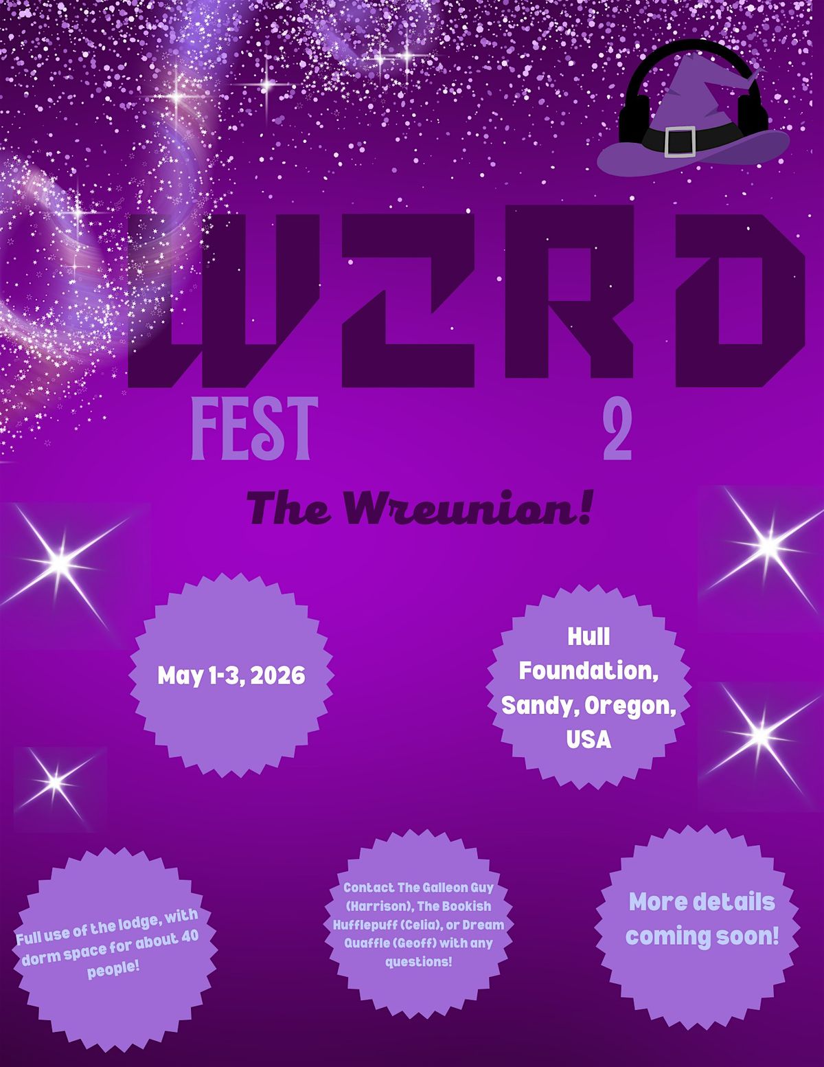 Are you ready to wrock! Join us in Sandy, Oregon for WZRDfest 2: the Wreunion! There will be wrock activities throughout the weekend and a concert on Saturday!