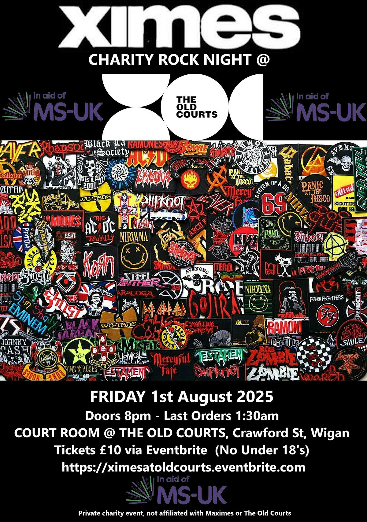 Join us for another revisting of a Friday night of fun in 'Ximes at in the Old Court @ The Old Courts in Wigan, UK!We're hosting a Charity Rock Night to shake you out of your middle aged slumber and help support MS-UK