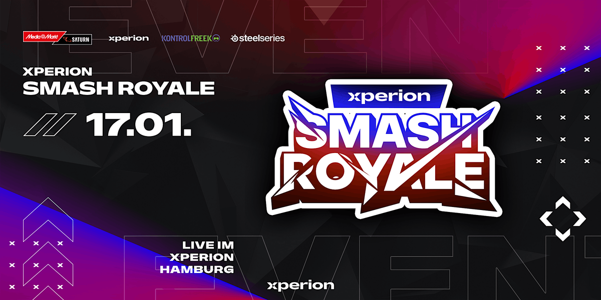 Am 17. Januar 2026 findet unser erstes großes Super Smash Bros. Ultimate-Event im XPERION Hamburg statt! Bei dem XPERION Smash Royale spielen bis zu 64 Teilnehmer um einen Preispool von 500€ sowie weiteren großartigen Preisen von SteelSeries und KontrolFreek.