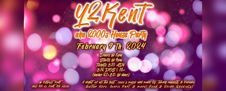 Y2Kent aka 2000's House PartyFebruary 9th, 2024 / Ages 18 + / 9:00pm - 1:00am Doors open at 8:00pm $10 ADV | $12 DOS (Under 21 +$5 @ door)