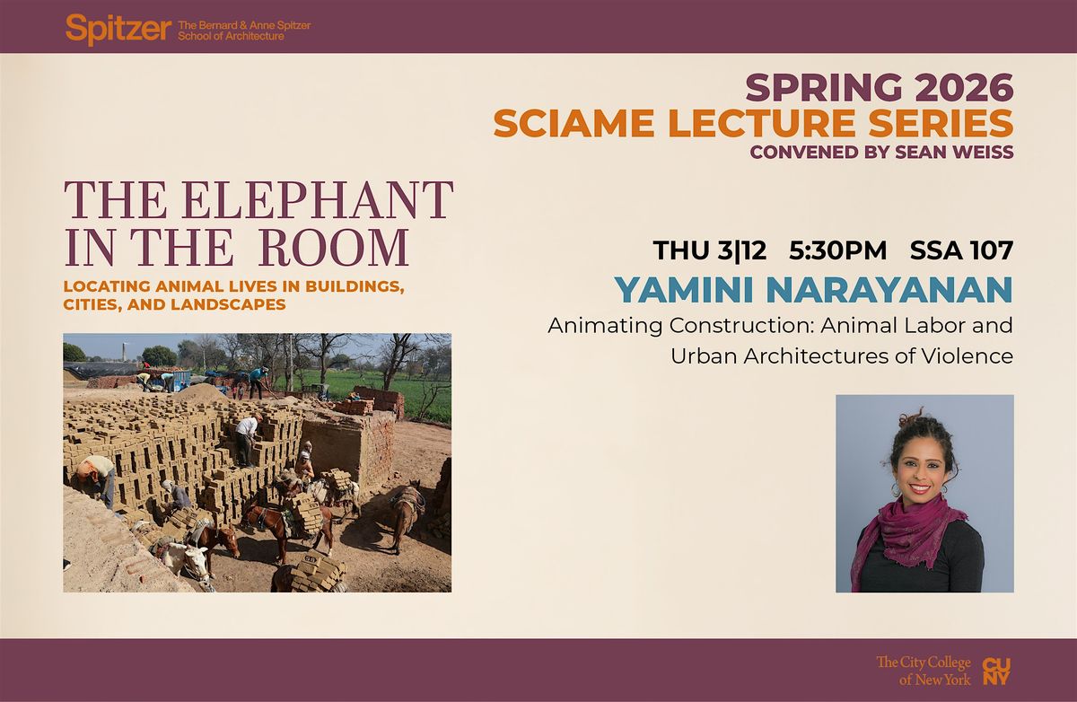 This in-person lecture is part of the Spring 2026 Sciame Lecture Series, "The Elephant in the Room: Locating Animal Lives in Buildings, Cities, and Landscapes."
