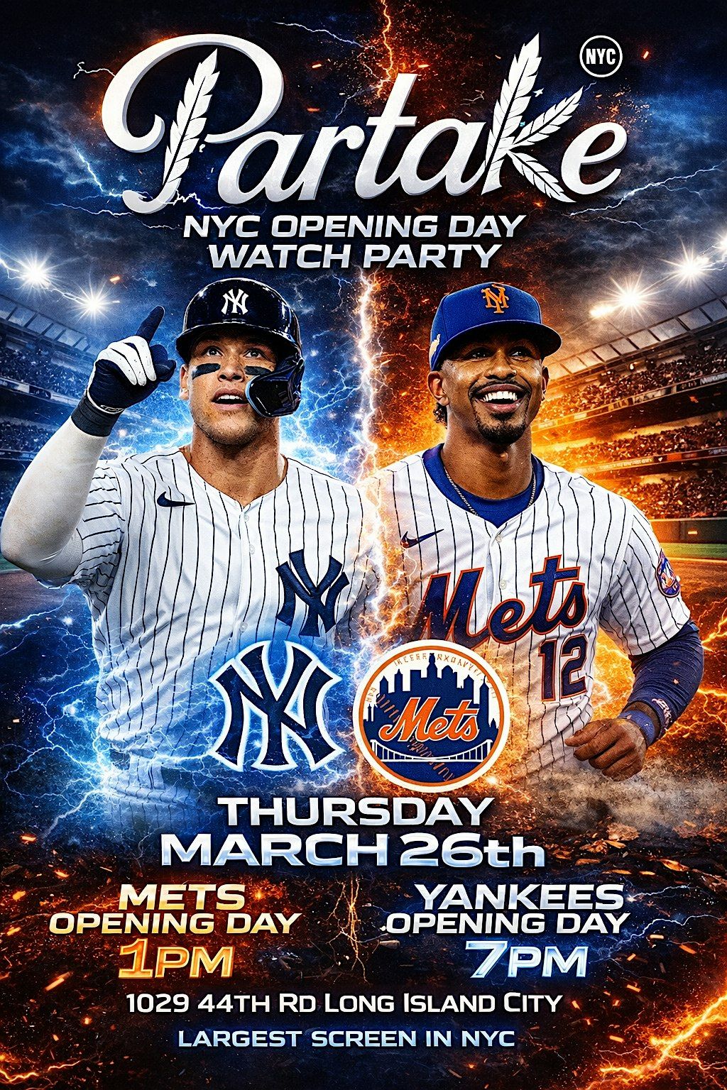Baseball season is back and Partake NYC is hosting the ultimate Opening Day Watch Party in Long Island City. Join us for a full day of baseball, great food, cold drinks, and the best energy in NYC as we watch both New York teams kick off the season.