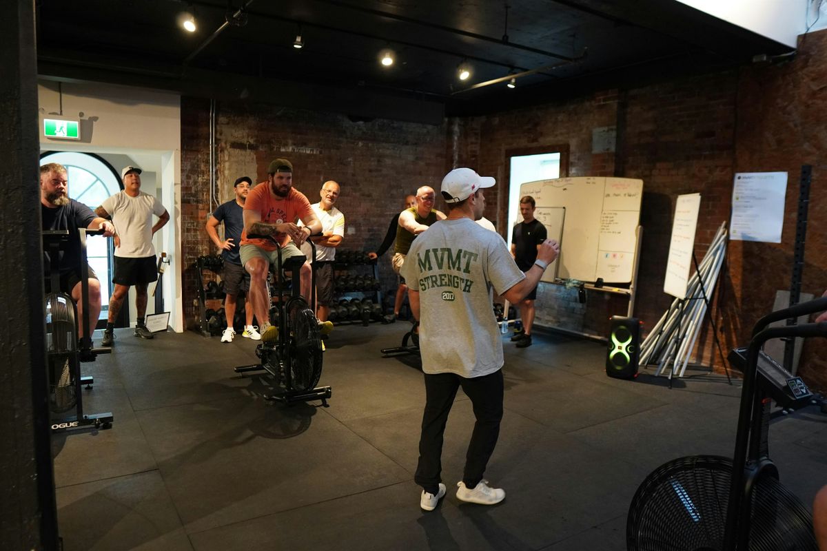 This is simple, effective training focused on real strength and effort. You’ll move weight, carry awkward objects, and work through full-body patterns that build durability and confidence. No mirrors. No gimmicks. Just solid work alongside other men who showed up for the same reason you did.