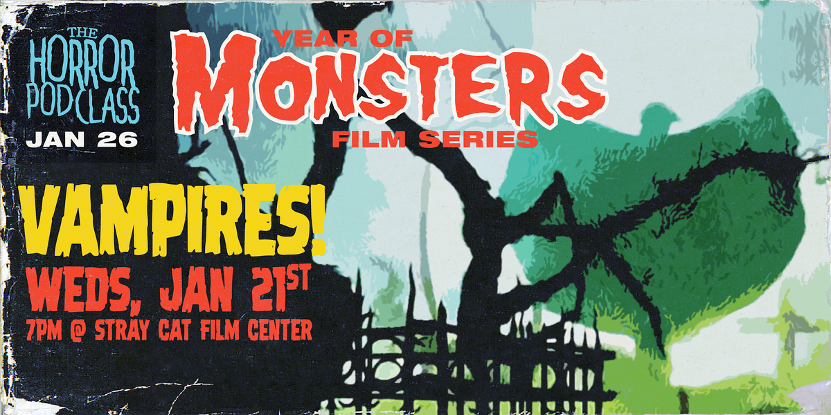 What is it? The only way to know for sure is to come join us for a FREE screening at the Stray Cat Film Center on January 21 as we kick off a Year of Monsters on the Horror Pod Class, then stick around after the show as Orrin and Tyler host a live podcast on all things vampires.