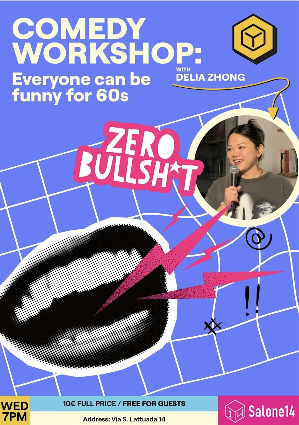 What: zero bullshit workshop, within an hour I will let you know you can actually learn to be funny. Straight to the point, I'll bring you jokes writing structure and practice on different types of jokes to find which ones are your style, you'll have your jokes ready right after, and this is not the best part yet, after the workshop you will get to perform at our show starts at 21:00 to test out your jokes!