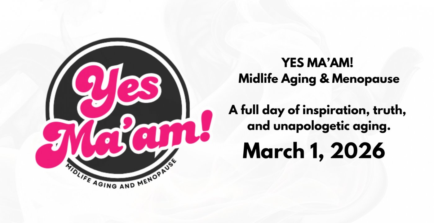 YES MA’AM: Yes to Midlife, Yes to Aging, Yes to Menopause is a one-day live experience created for women who are done whispering about getting older and ready to talk about it out loud. The event takes place Saturday, March 1, 2026, at the Mississauga Grand Banquet & Event Centre, bringing together women for a powerful day of conversation, laughter, and connection.