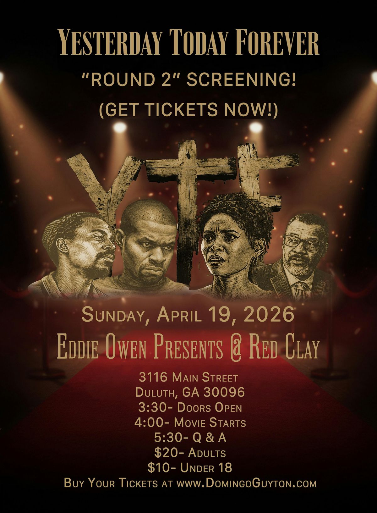 After selling out the tickets 4 days before the December 21, 2025 premiere, we are back by Popular Demand to do another screening. Please get your tickets NOW! This movie has already won two awards: Best Feature Film and Best Director at the 2026 St. Pete Black Art & Film Festival. AND JUST IN- YTF has just been nominated for three awards at the International Christian Film Festival, happening in Orlando, FL between April 28 - May 2, 2026! Come on out and see what the hype is all about!