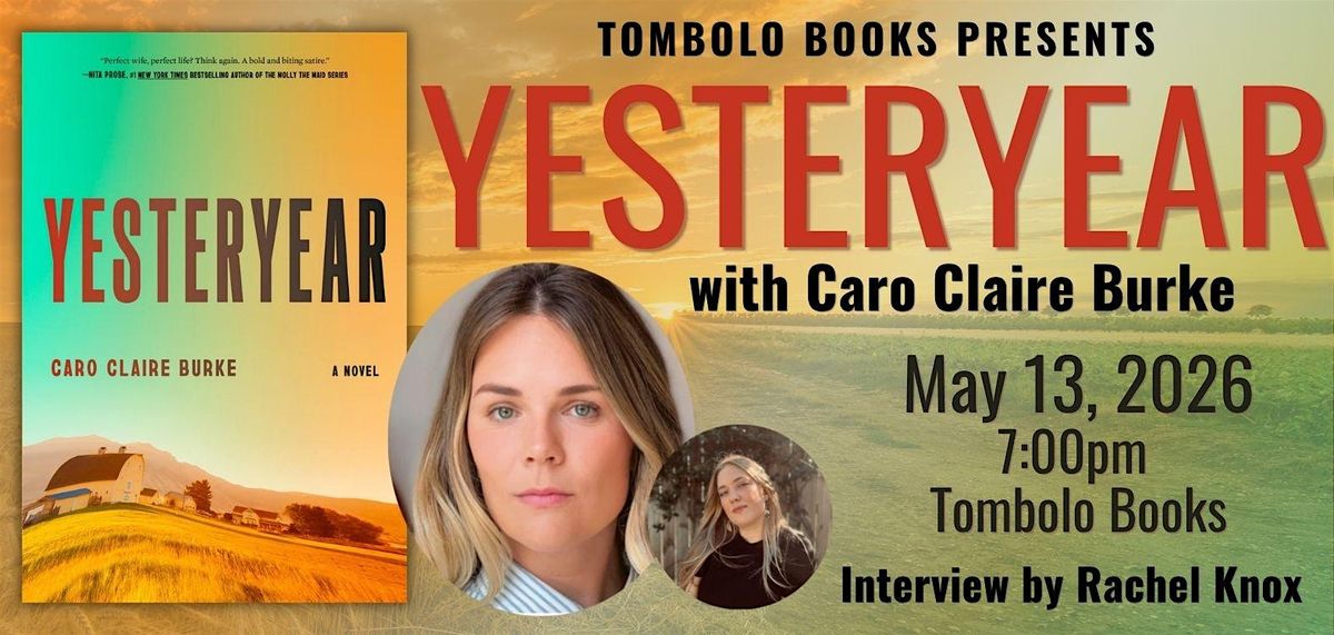 Tombolo Books is thrilled to welcome debut author Caro Claire Burke to the bookstore to celebrate her highly-anticipated novel Yesteryear! A gripping, electrifying novel that is as darkly funny as it is frightening, Yesteryear is a gimlet-eyed look at tradition, fame, faith, and the grand performance of womanhood.