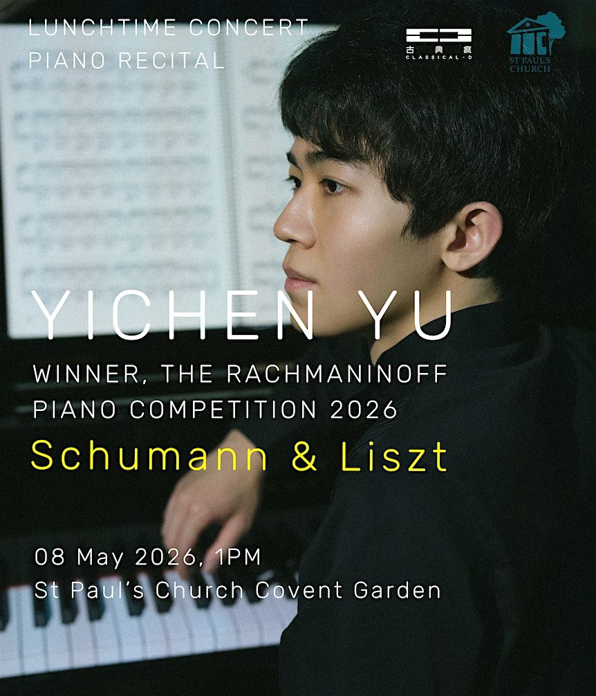 The first prize winner of the Rachmaninoff Piano Competition 2026 - Yichen Yu, will play Schumann & Liszt at St Paul's Church Covent Garden.