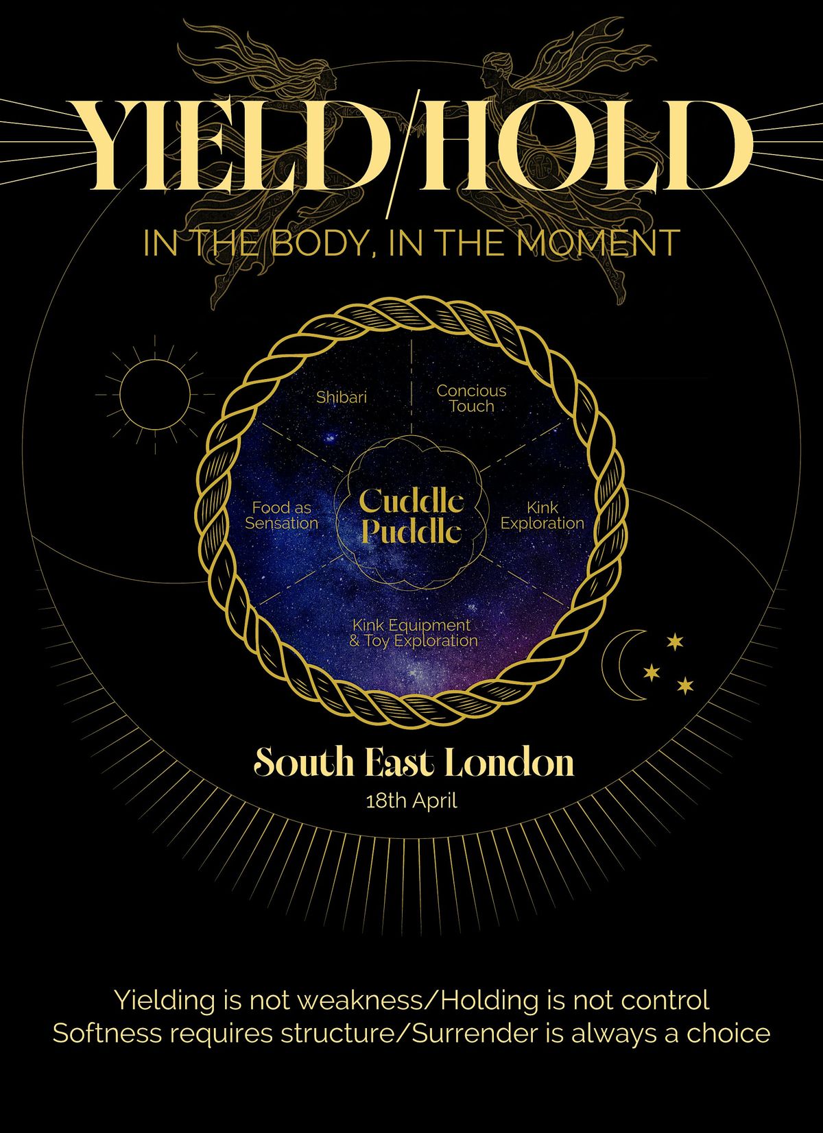 Yield | Hold is a full-day embodied immersion exploring conscious power, presence and relational depth within a carefully held, consent-rooted container.