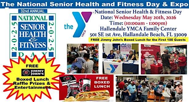 Wednesday, May 20th, 2026 (10:00am - 12:00pm) National Senior Health & Fitness Day & Expo at The YMCA Hallandale (FREE Boxed Lunch)About this Event