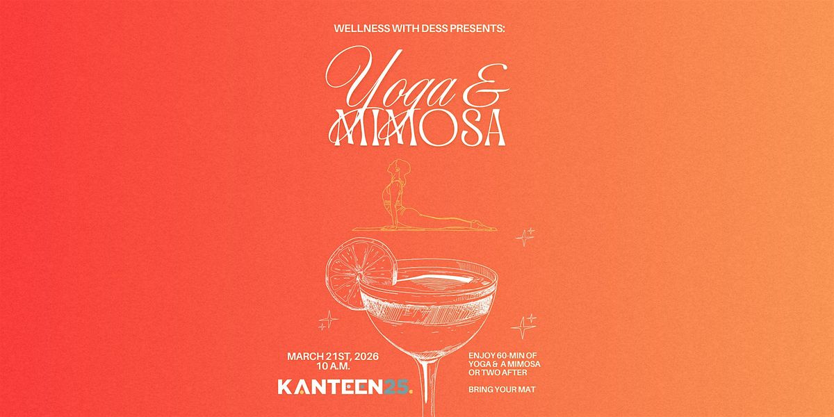 Love yoga and enjoy mimosas? The perfect pairing is here. Join Wellness With Dess at Kanteen25 for Yoga & Mimosa, a feel-good blend of mindful movement, calm energy, and a touch of bubbly indulgence. Settle into a 60-minute flow and yin session designed to awaken your body and deeply relax your mind. After class, enjoy your complimentary mimosa and soak in the warm, inviting atmosphere of Kanteen25. Maybe even grab Brunch! It’s the ideal way to reset, recharge, and elevate your weekend.