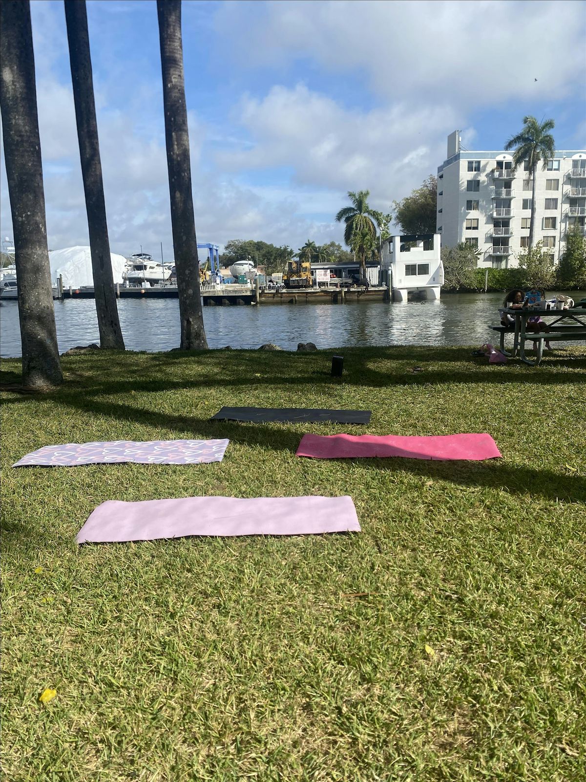 Unwind and stretch out with some chill yoga moves right next to the soothing river vibes.