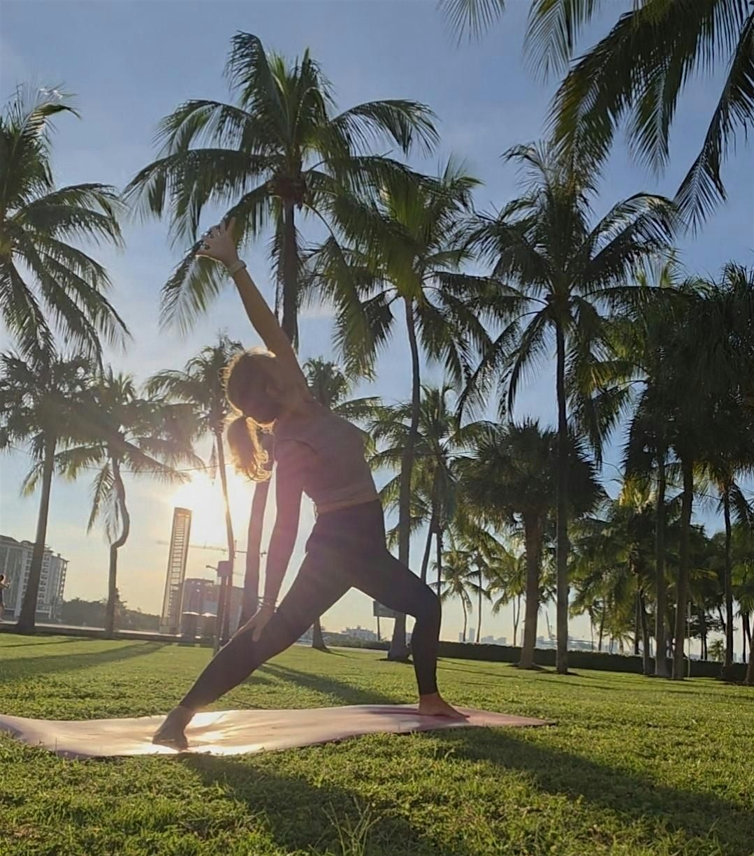 We'll meet between 9.50am & 9.55am on the grass, in South Point park, Miami Beach. Class starts promptly at 10am.