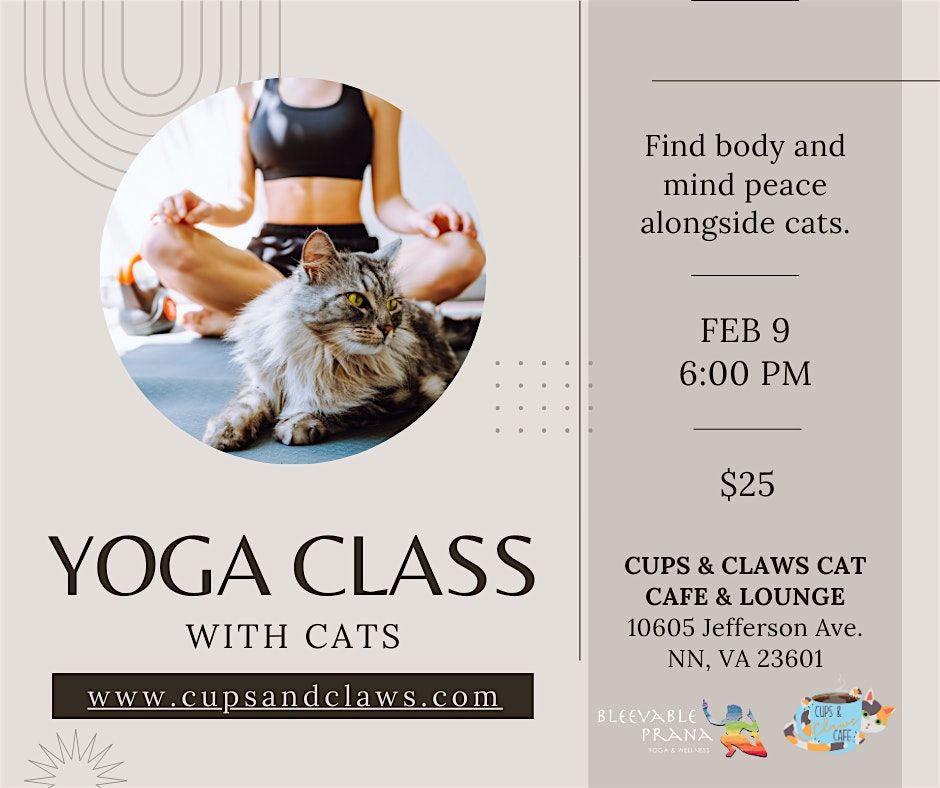 Get ready to downward dog with some furry friends at our Yoga Class with Cats & Kittens, a purrfect way to unwind and stretch!