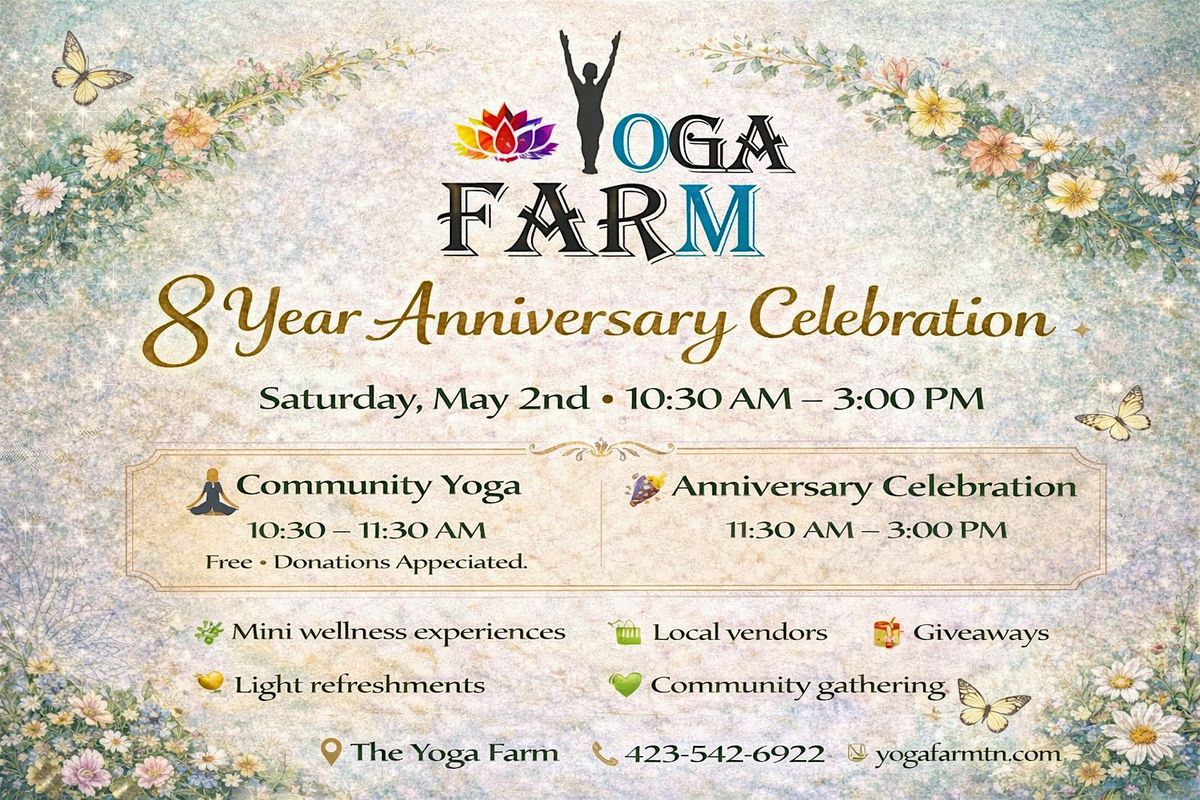 Join us as we celebrate 8 wonderful years of the Yoga Farm with a day dedicated to community, gratitude, and wellness. This special event is our way of saying thank you to the incredible people who have supported and grown with us over the years.