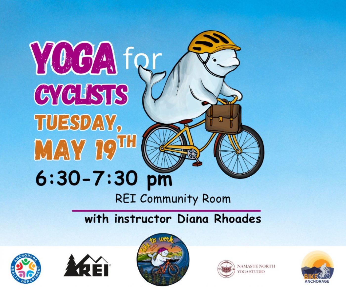 Join us for a relaxing and energizing evening of yoga designed especially for cyclists. This session will focus on stretching and strengthening key muscle groups to help you ride more comfortably and prevent injury all Bike Month long and beyond.