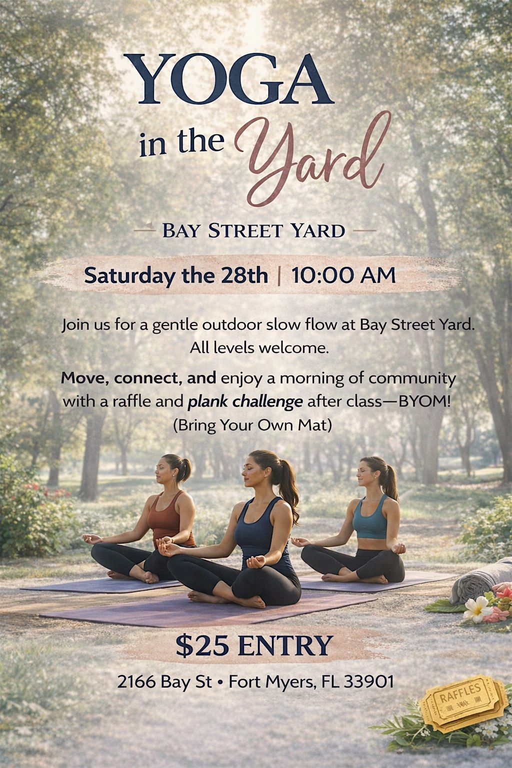 Join us on Saturday the 28th at 10:00 AM at Bay Street Yard for a gentle outdoor slow flow designed to help you reset, connect, and start your weekend feeling grounded.