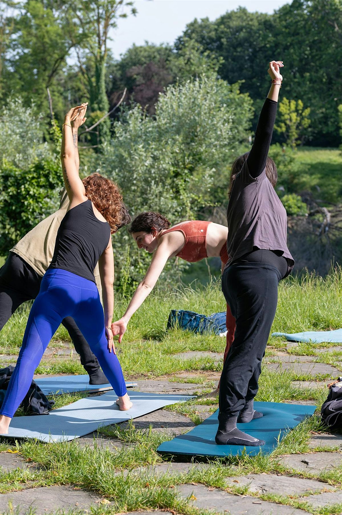 Nuove pratiche di yoga al Parco Lambro, Milano.