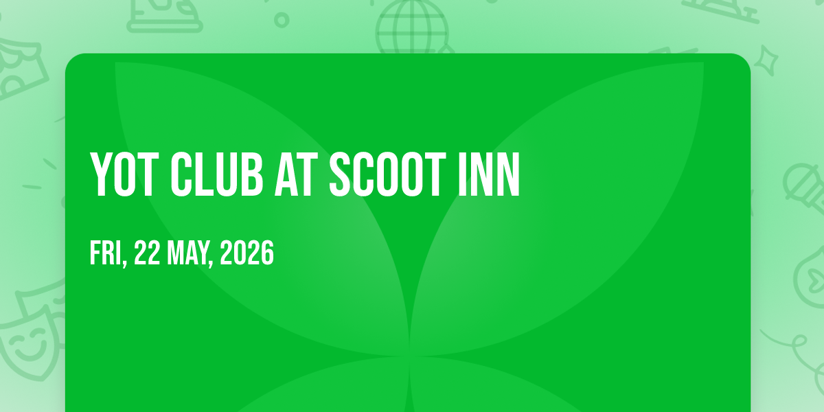 🌟 Step into a world of wonder at Yot Club at Scoot Inn, where extraordinary moments await! 🏛️ Located at Scoot Inn in dynamic Austin, TX, this event will become the talk of the town. 📅 Join us on May 22nd, 2026 at 06:00 PM for a celebration that defies the ordinary. ✨ This curated experience brings together the best of entertainment, culture, and community spirit. Every detail has been thoughtfully planned to ensure an unforgettable experience for all our guests. 🎯 Take advantage of this opportunity to be part of something special. 🎊 Early registration is recommended as space is limited!