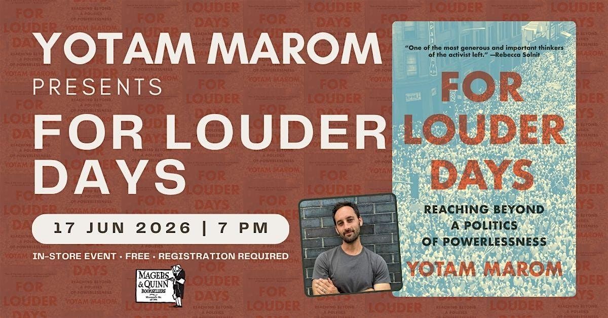 In For Louder Days: Reaching Beyond a Politics of Powerlessness, Marom offers a brilliant, lyrical clarion cry for a more honest, more strategic, more loving approach to progressive activism and movement building. Grounded in decades of experience in movements, from leading at Occupy Wall Street and other movement moments to supporting some of the most important climate, racial justice, and democracy movements of our time, Marom dives deep into the challenges that hold movements back, and offers stories, tools, and paths toward real power and enduring change.
