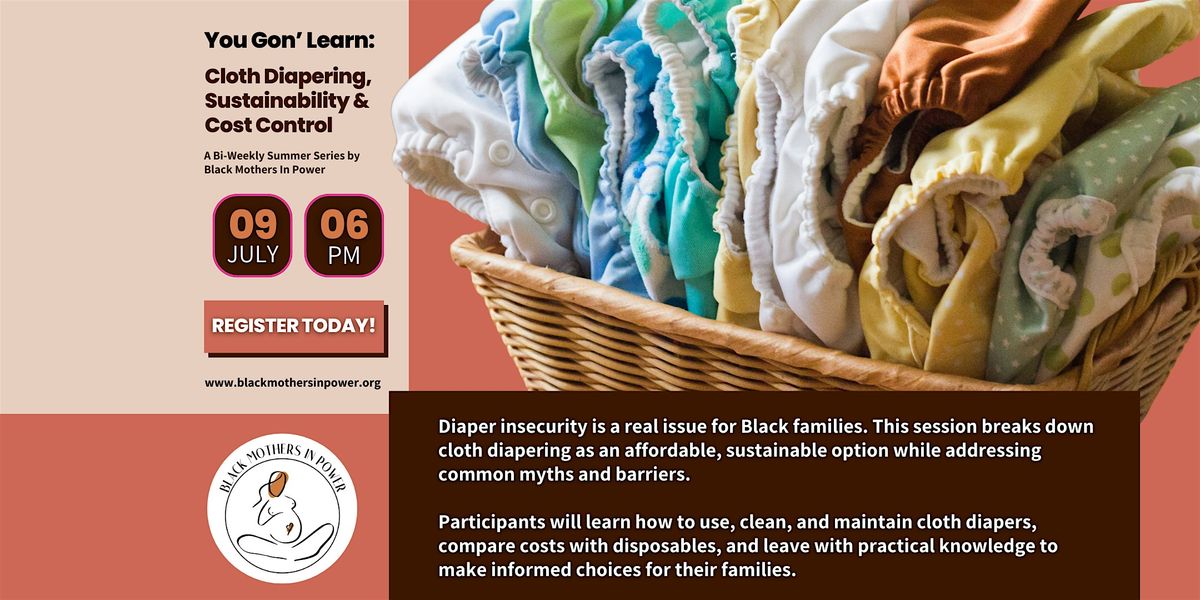 Join us for a fun and informative in-person event all about mastering cloth diapering! Diaper insecurity is a real issue for Black families. This session breaks down cloth diapering as an affordable, sustainable option while addressing common myths and barriers.